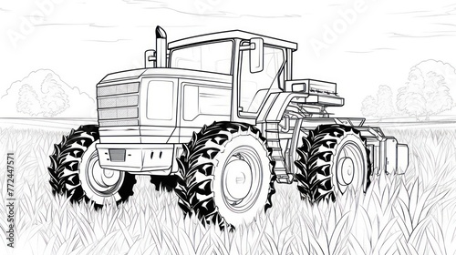 Agricultural Coloring Book: Harvester in the field, designed for creative expression and design.