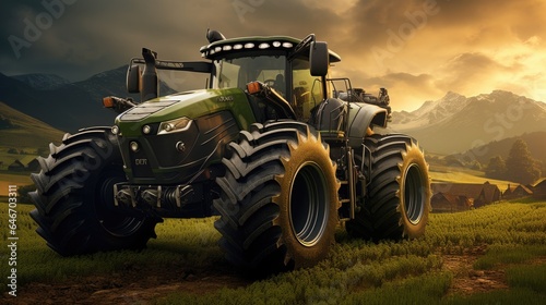 Agricultural tractor isolated on background. 3D rendering - futuristic tractor illustration.