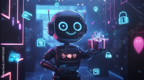 ギフトを届ける未来のロボットAIのイメージイラスト