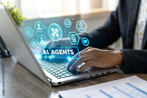 AI Agents Technology Concept with Businesswoman Using Laptop - High Resolution 300 PPI Image