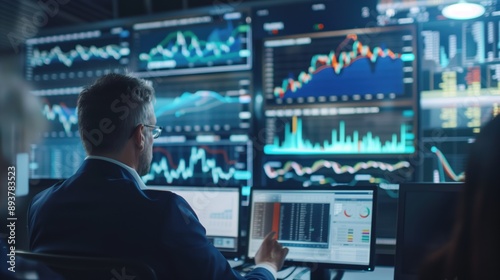AI algorithms analyzing stock market data with traders monitoring real-time financial charts and graphs. Artificial intelligence in finance, predictive analytics, market trends, decision-making .