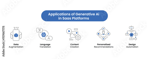 AI Applications in SaaS Platforms Icon Collection - Focus on Data Augmentation, Language Translation, and Design Automation. Vector Icons.