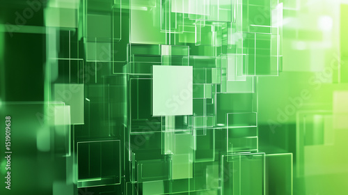AI, artificial intelligence logo on abstract green glass geometric rectangles background.