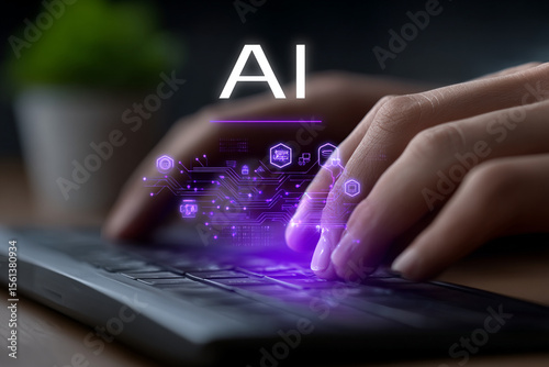 AI Artificial Intelligence technology for data analysis, research, planning, and work generate. Man uses a laptop and AI assistant dashboard. Technology smart robot AI agents and agentic workflows.