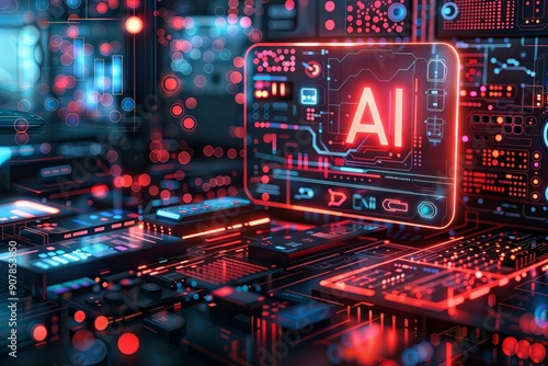 AI Circuitry. A vibrant digital representation of artificial intelligence circuitry, showcasing the complexity and interconnectedness of AI systems.
