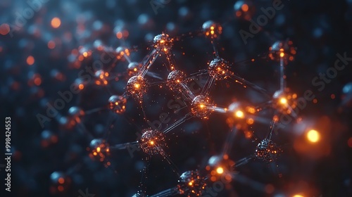AI connects social IoT networks, visualized as a futuristic cyber web with atom and molecule science elements.
