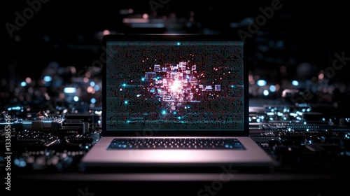 AI Data Visualization Laptop Screen Showing Generative Algorithm