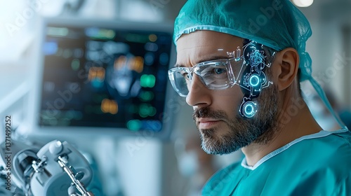 AI enhanced surgeon performing micro precision view illustrating unparalleled accuracy in healthcare Featuring a futuristic sci fi tone and an analogous color scheme