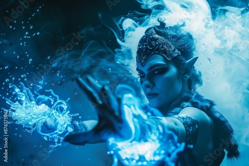 AI generated illustration of a fantasy-themed portrait of a woman with elf ears