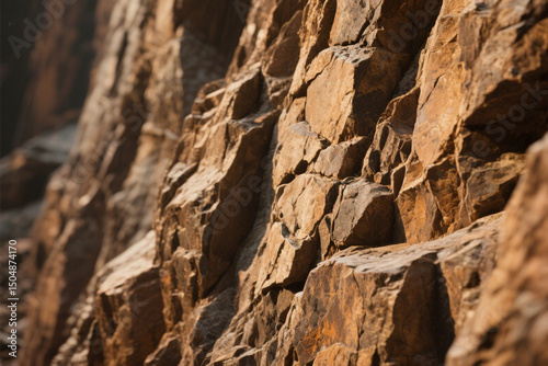 AI Generated image of Close up of a rugged brown rock face in natural sunlight