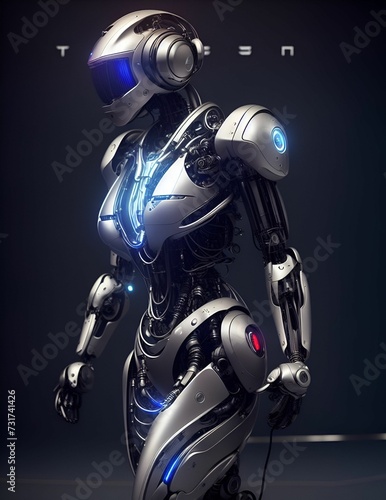 AI generated robotic figure standing on black background