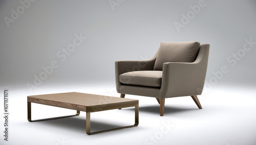 AI generative. Minimal design of coffee table set mockup, gray with blank white background. 1
