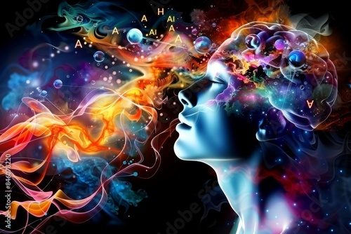 AI Human Head with Abstract Neural Network, Futuristic Technology