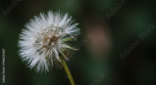 AI image of a macro closeup of a white dandelion seed head (blowball) with delicate seeds against a dark background.