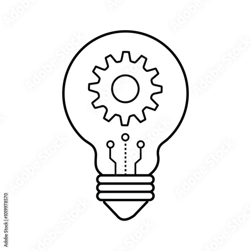 AI Innovation Process Bulb Vector Icon Design, creativity, digital innovation, AI solutions, safety in innovation, technology
