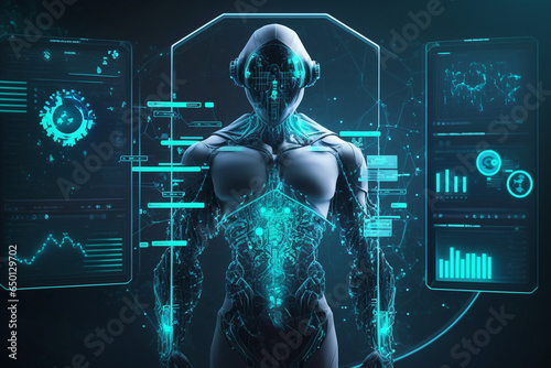 AI Metaverse concept collage with robots on Forex technology. AI Generative.