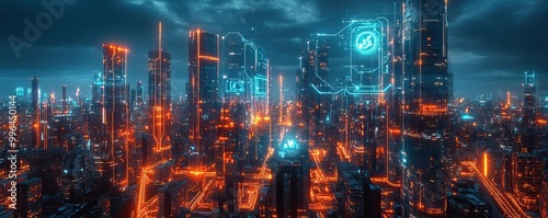 AI metropolis, digital innovation, futuristic architecture, holographic networks