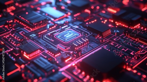AI Powered Circuit Board with Intricate Glowing Pattern