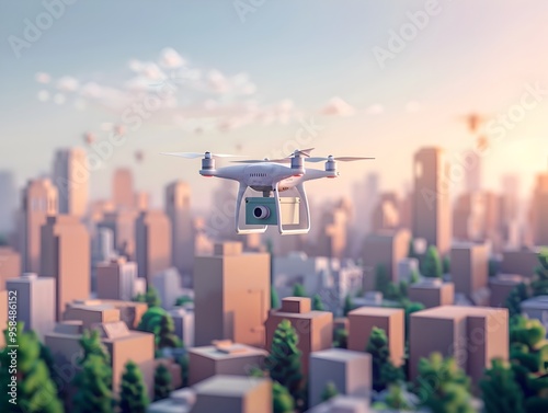 AI Powered Drone Delivering Packages in a Detailed Urban Cityscape with Advanced Logistics and Intelligence Technology
