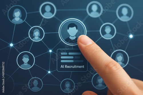 AI recruitment concept with finger selecting candidate profile on digital network interface