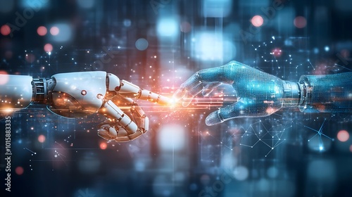 AI Robot Hands Reaching Out Digital Connection Technology Concept