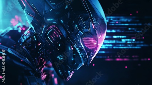 AI robot head with the text "AI", dark background, glowing elements around.