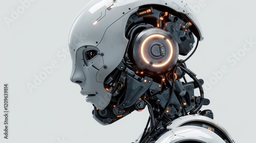 Ai robot thinking, side view, isolated on transparent background.