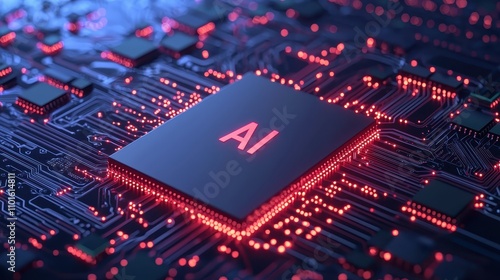 AI Technology Futuristic Circuit Board Microchip 3D Render