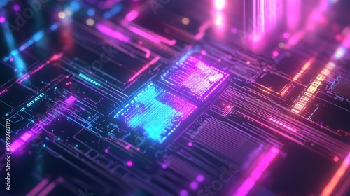 AI word on microchip and colorful light spread with strong beam , AI concept with copyspace banner background