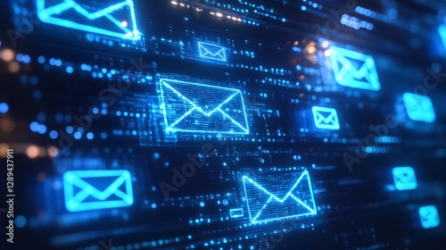 Ai-driven email marketing campaign digital space graphic visuals futuristic environment data-driven strategy