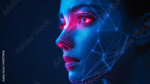 AI-driven facial recognition system enhancing security protocols, AI security, Advanced biometric technology.