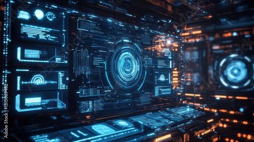 AI-driven Holographic Interface Displaying Futuristic Landscape