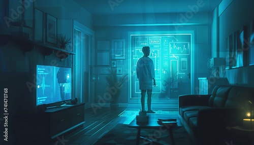 AI-Enhanced Home Health Monitoring, AI-enhanced home health monitoring with an image showing smart health devices collecting and analyzing biometric data to track vital signs, AI