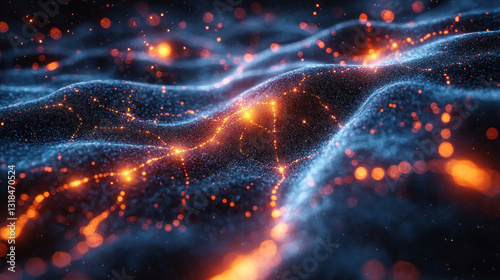 AI-generated science texture featuring deep neural pathways, futuristic machine-learning fractals, and glowing cybernetic data streams