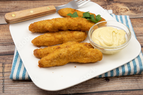 aiguillettes de poulet panées frites avec sauce