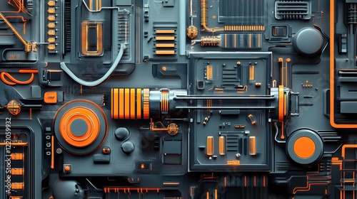 Air monitoring flat design top view futuristic technology theme 3D render triadic color scheme.