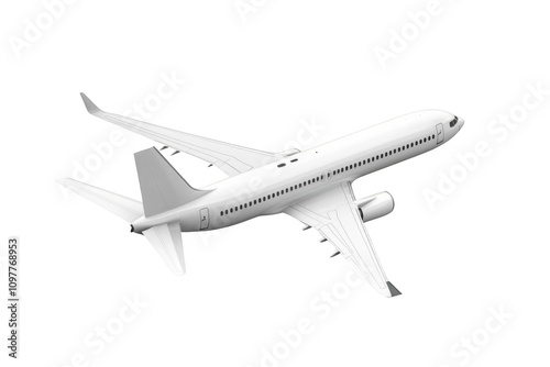 Airborne Elegance. Realistic airplane flying isolated on white background