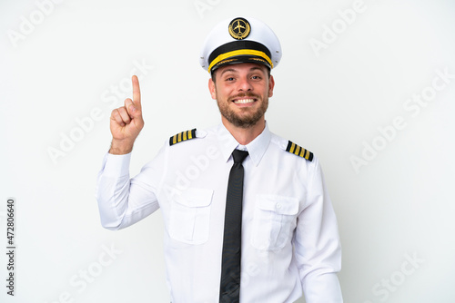 Airplane Brazilian pilot isolated on white background pointing up a great idea