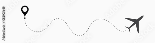 Airplane line path route travel vector concept. Plane path set. Travel path icon set. Location for travel, dotted road map with destinations. Vector illustration 10