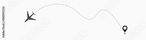 Airplane or aeroplane routes path. Aircraft tracking plane path, travel, map pins, location pins.