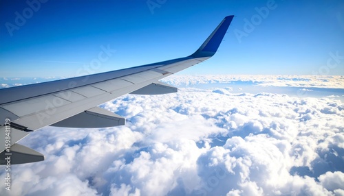 Airplane wing above clouds.View from airplane window a blue sky and clouds.