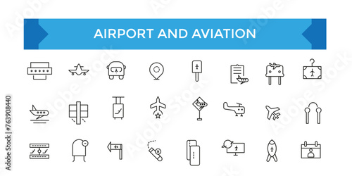 Airport and aviation Icon collection. Containing editable stroke icons. Perfect for logos, stats and iu design.