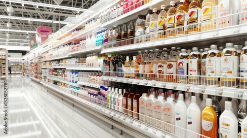 Aisle of Diverse Beverages and Personal Care Products in Supermarket