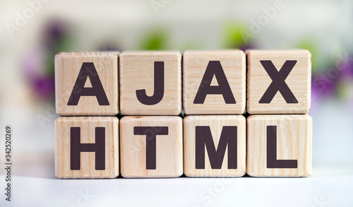 AJAX HTML - text on wooden cubes on a floral background with tulip buds