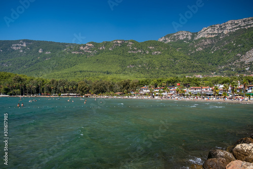 Akyaka beach in the centre of Akyaka village in Mugla province of Turkey.