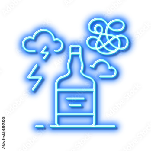 Alcohol addiction line icon. Difficult stress sign. Neon light effect outline icon.