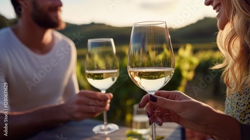Alcohol consumption at a vineyard with wine and scenic landscapes. Featuring tranquility and nature