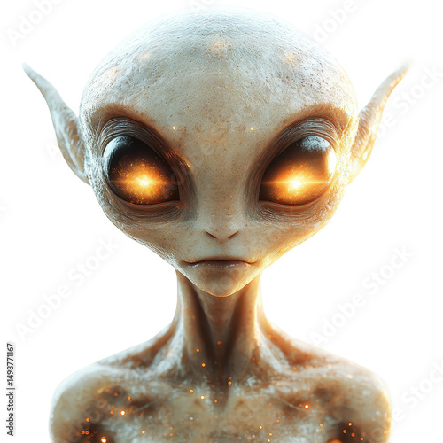 Alien Portrait with Glowing Eyes on Transparent Background