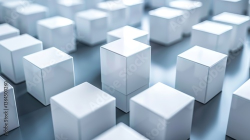 Aligned white cubes casting soft shadows on a monochrome background in modern minimalist design