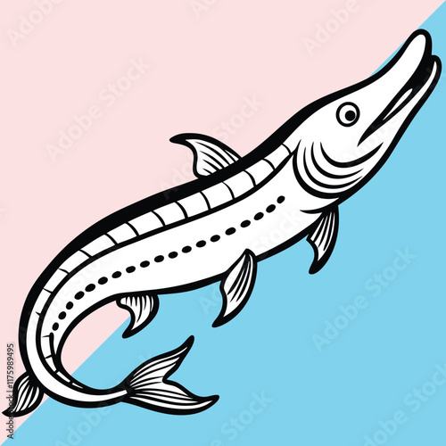 Alligator gar line arts with white background. Hand drawn vector of Alligator Gar fish isolated on white background.